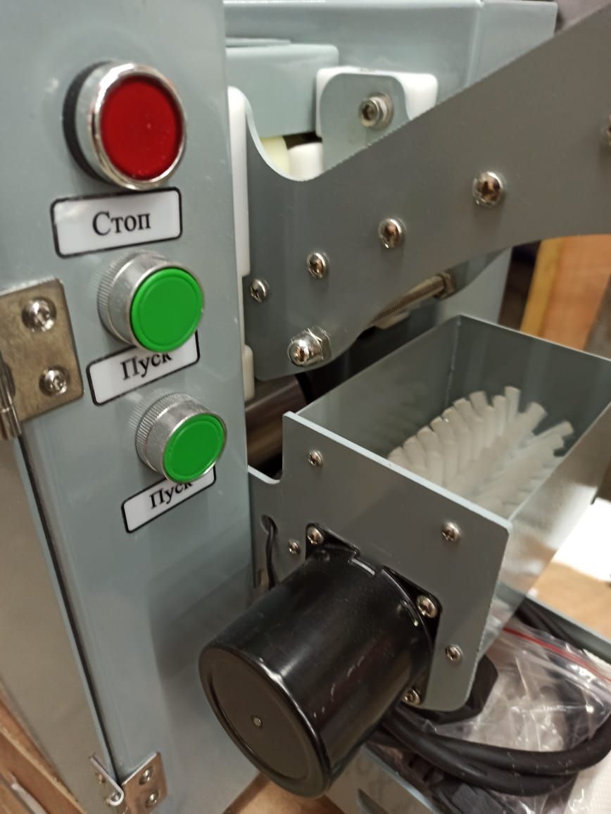 Основу конструкции аппарата составляет ряд вертикальных валков, через которые последовательно проходит тесто. В верхней части корпуса находятся регулировочные винты для изменения расстояния между валками. С их помощью можно регулировать толщину заготовок.
