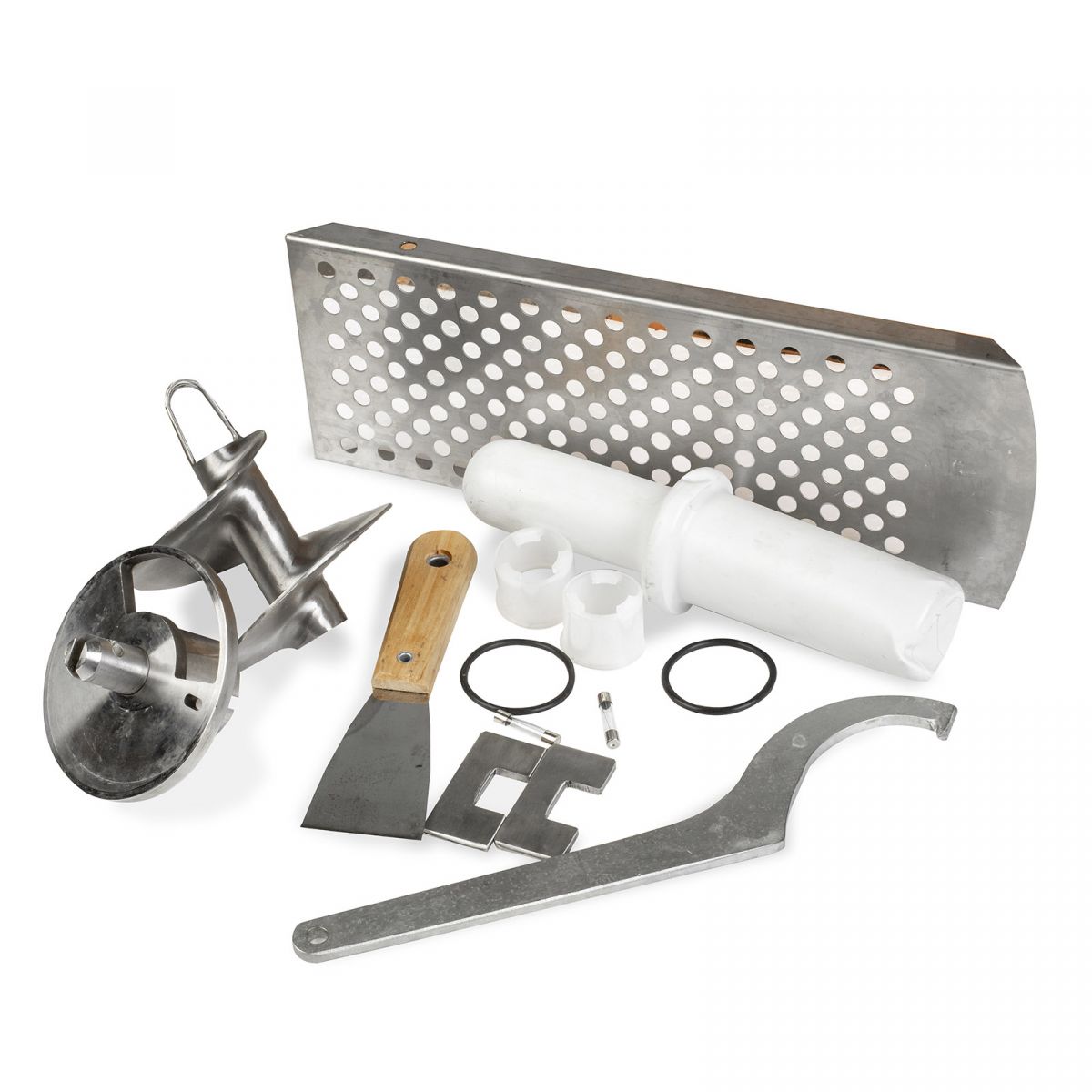 - Корпус тестоузла выполнен с дополнительным водяным охлаждением. Данный узел может сильно нагреваться за счет трения крутого теста даже при формировании средней толщины "тестовой трубки". Необходимо подключение к водоснабжению.