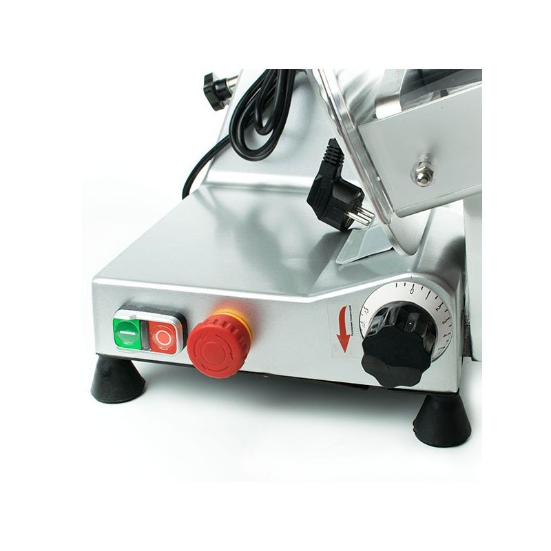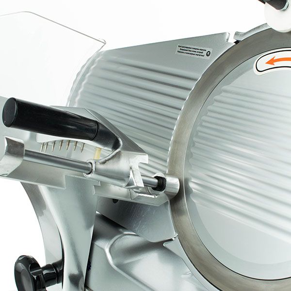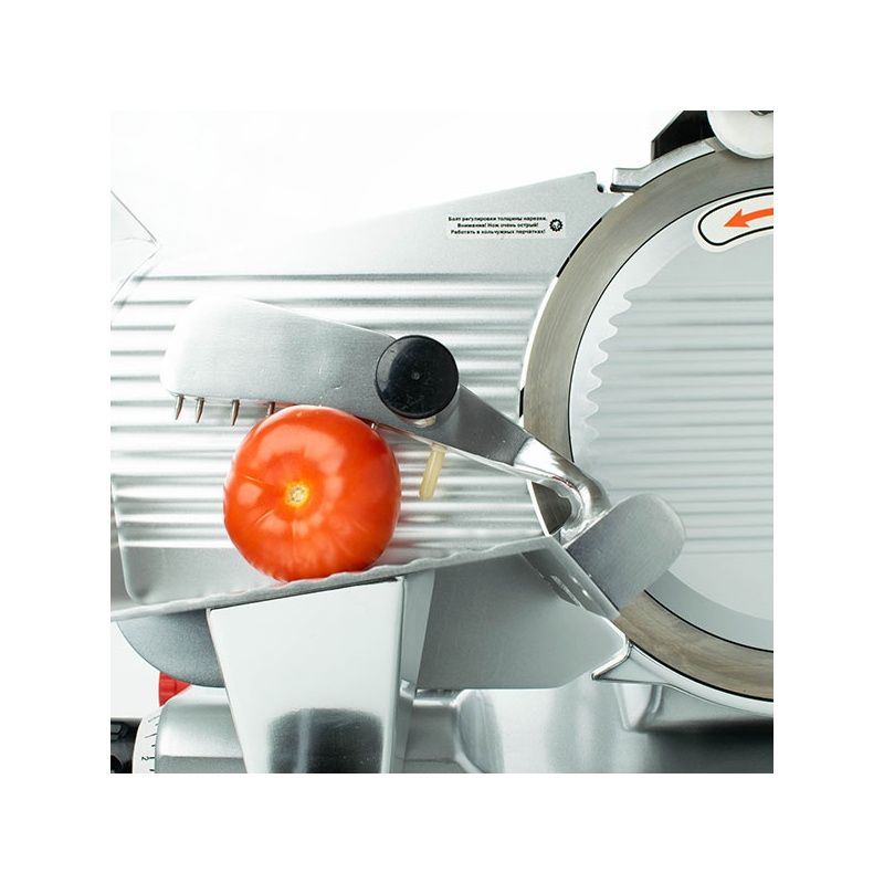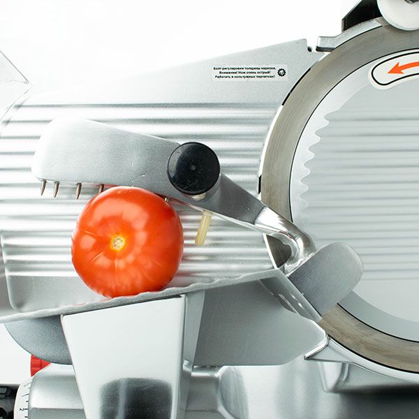 Конструкция слайсера обеспечивает ровный срез строго по заданному размеру. Высокая точность нарезки позволяет рассчитать в граммах выход готового продукта. Такое пищевое оборудование оснащено защитным кожухом, делающим процесс нарезки максимально безопасным.