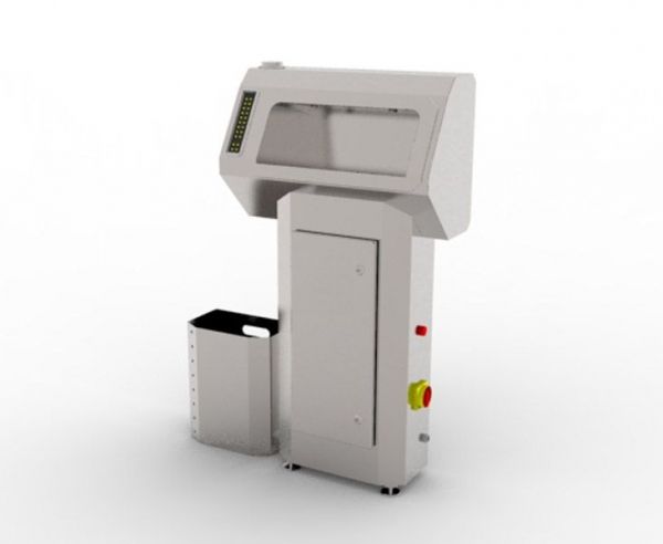 Санпропускник выполнен на стойке и оборудован модулем мойки и бачком с моющим средством. На переднюю панель санпропускника вынесен индикатор заполнения бачка. Наполнение бачка моющим раствором выполняется вручную.
