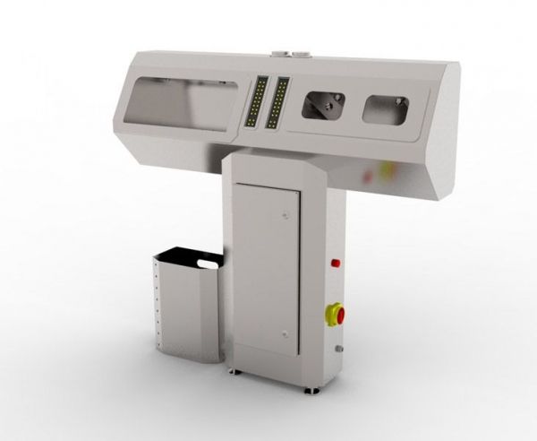 Санпропускник выполнен на стойке и оборудован модулем мойки, модулем дезинфекции, бачком с моющим раствором и бачком с дезинфицирующим средством. На переднюю панель санпропускника вынесены индикаторы заполнения бачков. Наполнение бачков моющим и дезинфицирующим растворами выполняется вручную.