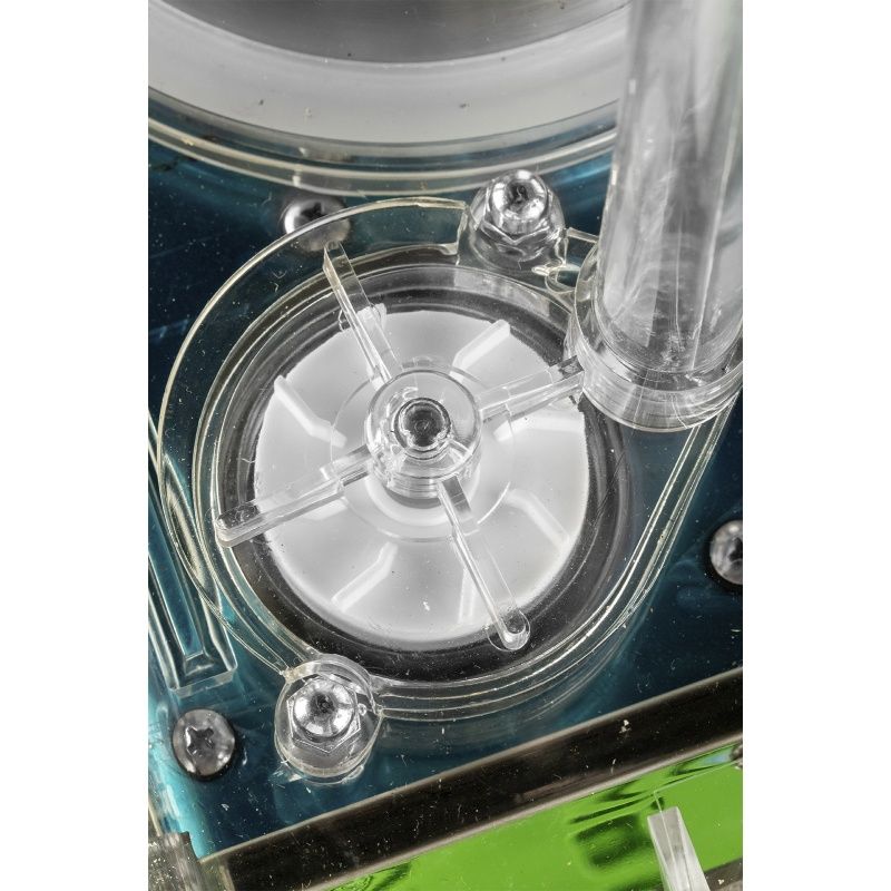 Модель изготовлена в соответствии со всеми требованиями гигиены. В ее основании находится корпус из нержавейки, в котором скрыт теплообменник, использующий хладагент вида 406. Сверху на корпус устанавливаются две емкости из прозрачного пластика объемом 18 литров. Они закрыты ярко-желтыми пластиковыми крышками, которые наряду с красными краниками привлекают дополнительное внимание к объекту. Желтую окантовку имеют и площадки, куда ставятся стаканы.