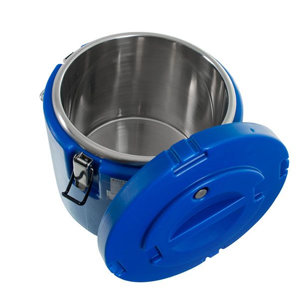 Термос для ресторанов, гостиниц, предприятий общественного питания, столовых, школ, детских садов и банкетных залов. Емкость оснащена 2 удобными, массивными ручками, выполненными полностью из нержавеющей стали, что облегчает переноску и транспортировку. Для максимального удобства использования термос оборудован специальным металлическим клапаном, который служит для компенсации давления, облегчает открывание и устраняет проблему всасывания крышки при транспортировке горячих блюд. Клапан расположен на крышке термоконтейнера. С холодными напитками термос будет более эффективным, если вы положите его в холодильник как минимум на один час перед его использованием. Высокие показатели теплоизоляции делают термос одним из самых эффективных инструментов для кейтеринга для хранения и транспортировки продуктов питания.