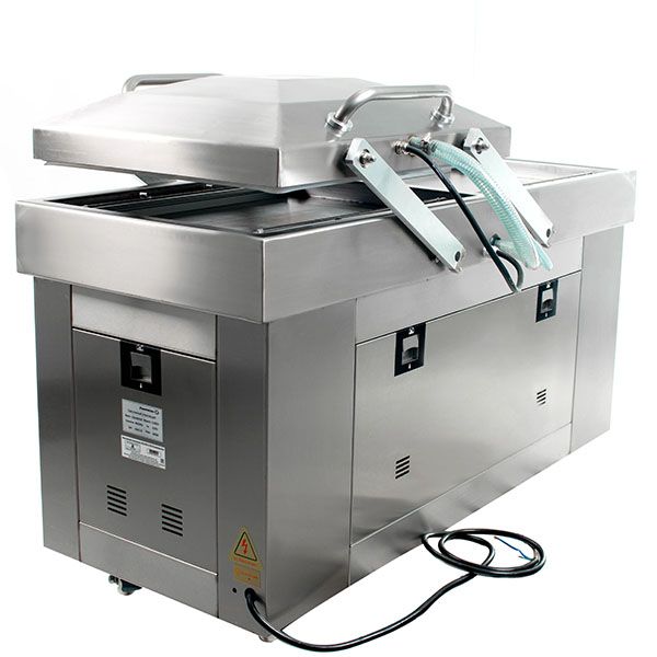 Камерный тип оборудования. Оборудование может иметь одну или две вакуумных камеры. Для двухкамерных упаковщиков так же есть подразделение на расположение камеры (одна на основном корпусе оборудования, вторая в корпусе подвижной крышки)