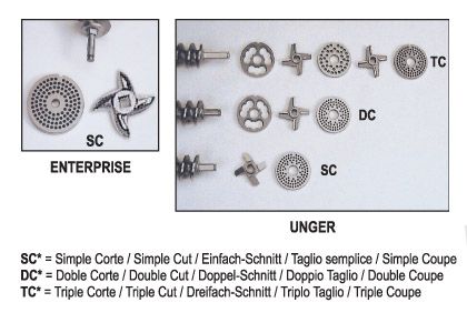 UNGER 70 (однократное измельчение: 1 нож и 1 решетка; двукратное измельчение: 1 нож и 2 решетки)